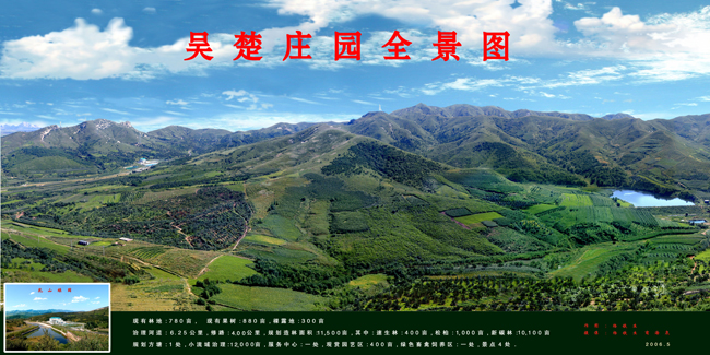 錦州吳楚莊園集團有限責任公司位于風景秀麗的凌海市白臺子鄉(xiāng)興隆峪村,是一家集生態(tài)農(nóng)業(yè)、林果栽培、大田種植、畜禽養(yǎng)殖、莊園農(nóng)業(yè)觀光、餐飲休閑娛樂、建筑裝飾工程于一體的大型綜合性莊園企業(yè)。公司成立于2004年,占地面積35000畝,注冊資本2500萬元人民幣,員工百余人。公司自創(chuàng)建到現(xiàn)在,歷經(jīng)幾年的發(fā)展,先后投資8000余萬元,建立了乳山林果有限公司、吳楚度假村、吳楚戶外運動部、四海建設工程有限公司等多家子公司。